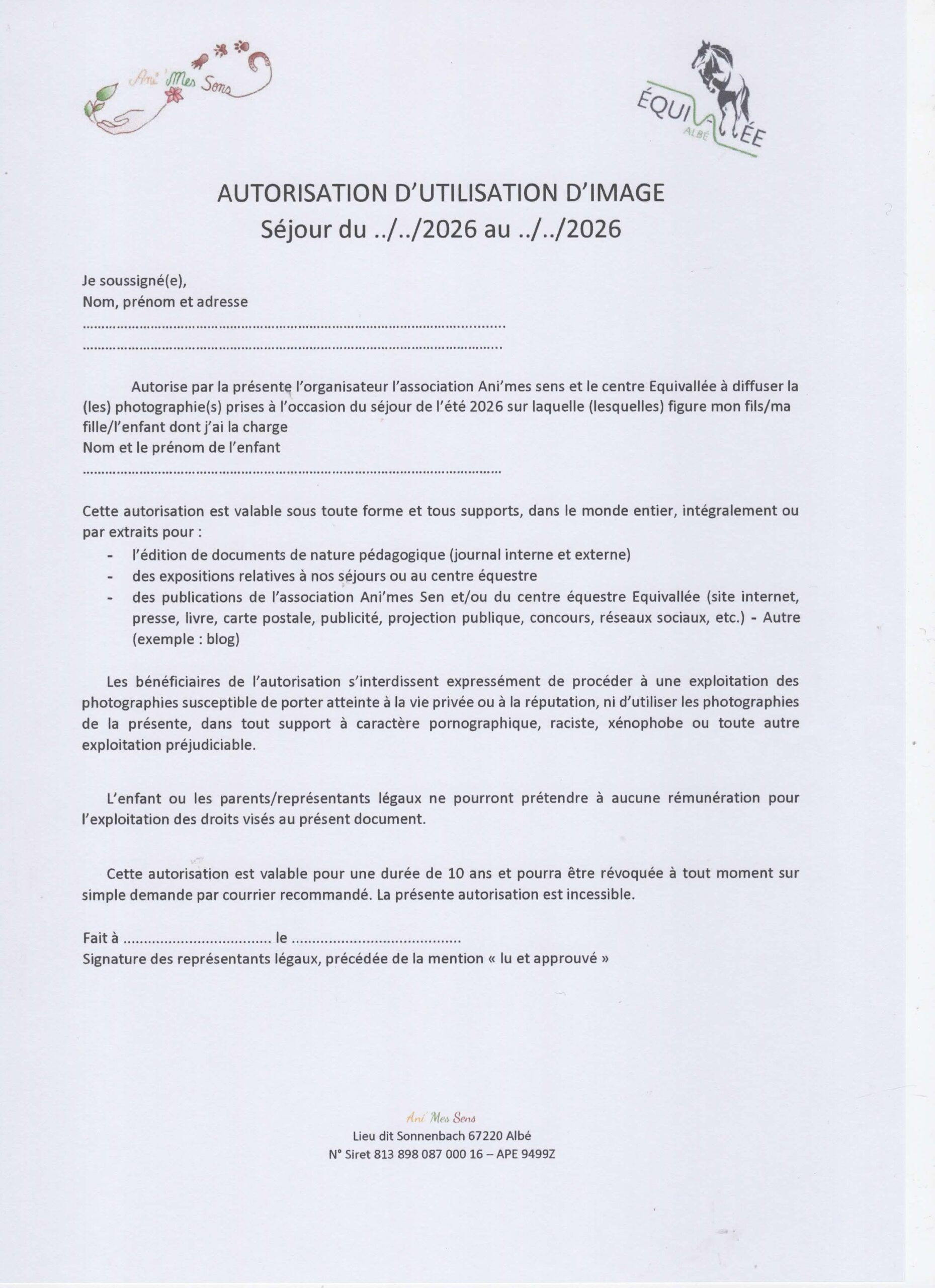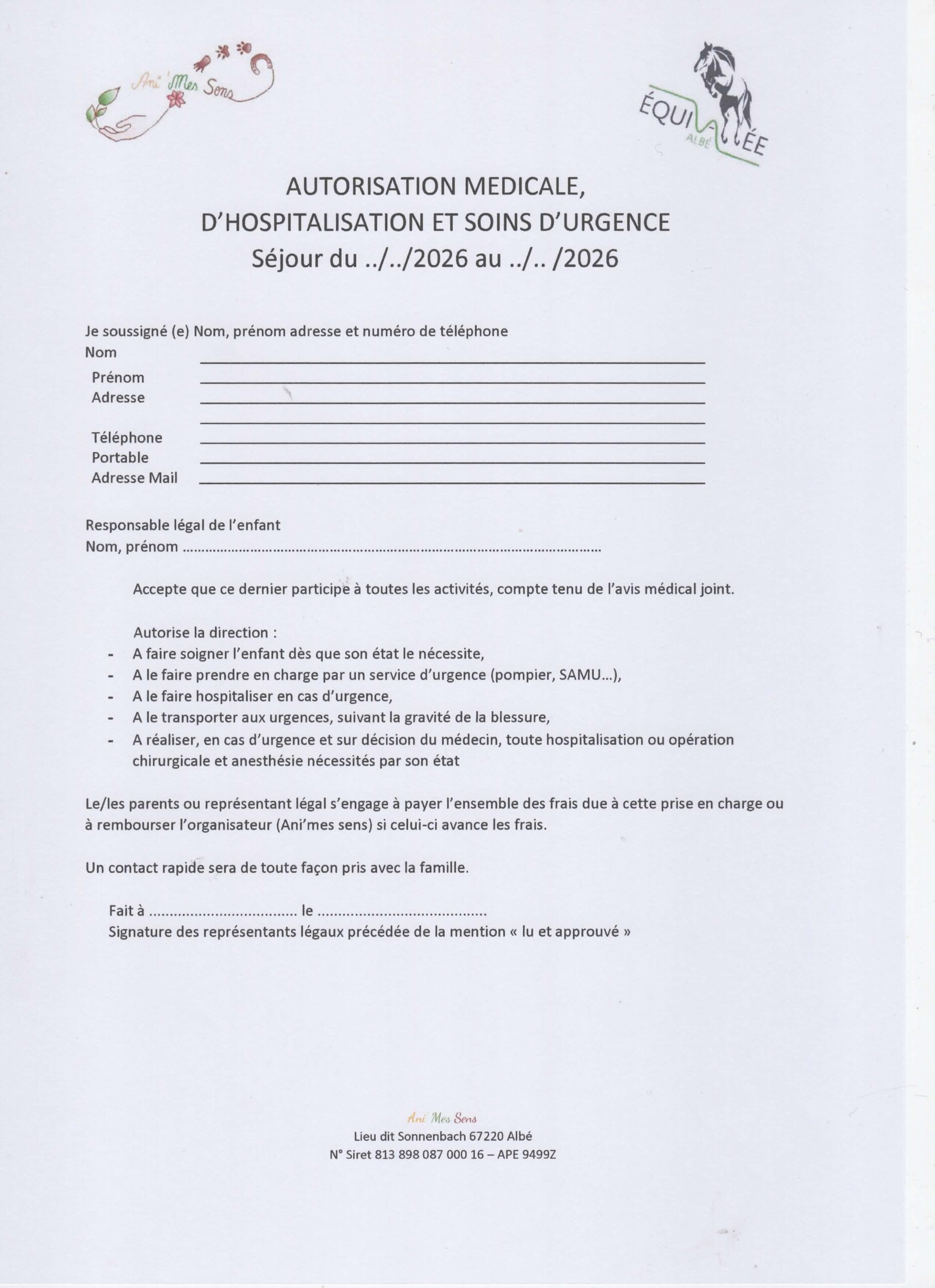 Documents d’inscription à remplir et à renvoyer à colo.ani.mes.sens@gmail.com